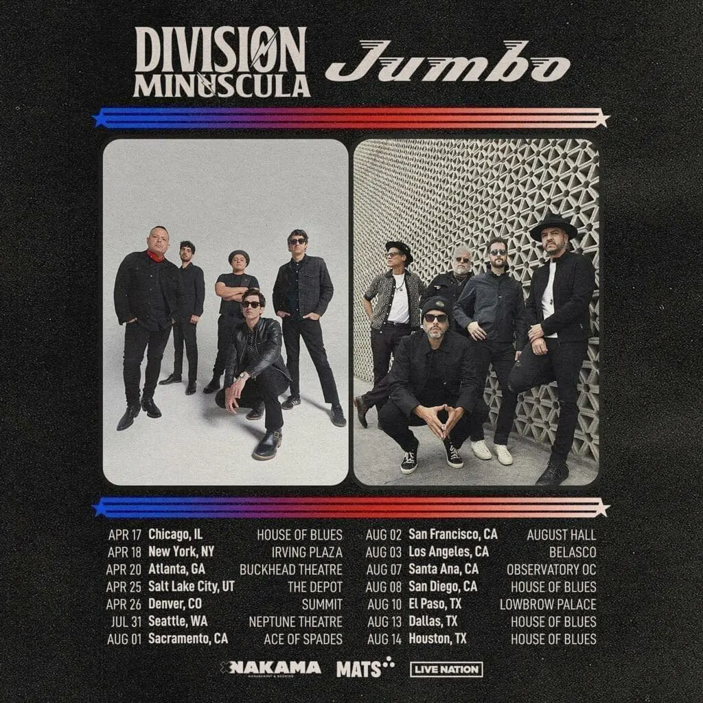 La gira “División Minúscula & Jumbo – US TOUR 2024”, producida por Live Nation y MATS Agency, arranca el 17 de abril en Chicago, Illinois, en el House of Blues y continua en New York, Atlanta, Sacramento, y Los Ángeles, entre otras ciudades de Estados Unidos.