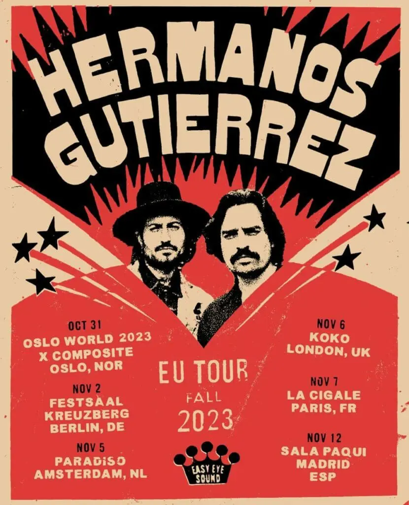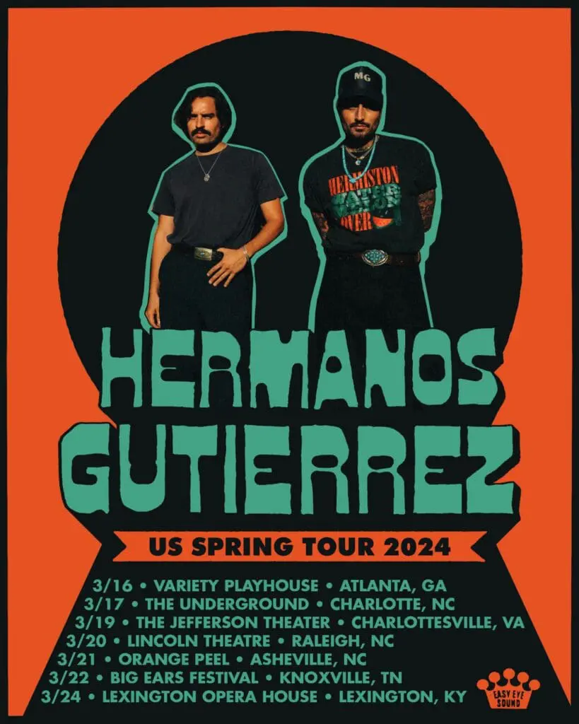 El duo también actuó recientemente en los Americana Music Awards 2023, donde fueron nominados a Álbum del Año. Tras las exitosas giras de 2023 por Norteamérica, Hermanos Gutiérrez regresan a Estados Unidos para tocar sus canciones íntimas y cuidadosamente elaboradas en ciudades selectas del sureste del país. Además de tocar en ciudades como Raleigh, NC y Lexington, KY, el dúo también actuará en Big Ears Festival en Knoxville, TN.
