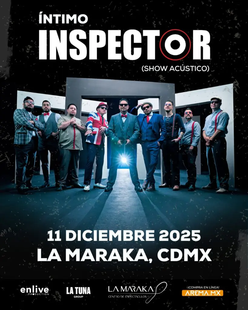 La emblemática agrupación mexicana Inspector celebrará una fecha muy especial: el jueves 11 de diciembre, el Centro de Espectáculos La Maraka se vestirá de gala para conmemorar sus 30 años de vida artística, en un concierto que mezcla la memoria, la fiesta y el agradecimiento. El evento está organizado por EnLive Producciones, compañía que una vez más demuestra su vocación por sumar conciertos de calidad al escenario nacional. Los boletos ya están disponibles a través de la plataforma Arema y en taquillas del inmueble.