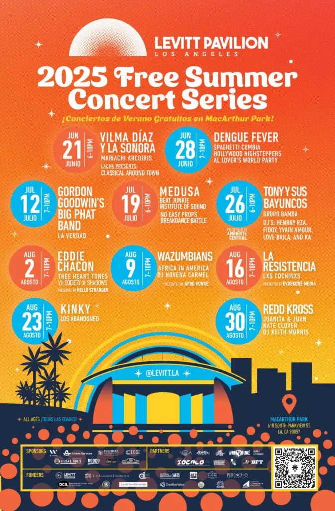 Levitt Pavilion Los Angeles (Levitt LA) celebra su 18. ª serie anual de conciertos con 10 presentaciones de primer nivel, todas gratuitas y abiertas a todo el público este verano, para mostrar la diversidad cultural de Los Ángeles con un fabuloso cartel de artistas, transformando el MacArthur Park en un vibrante y dinámico oasis sonoro urbano.