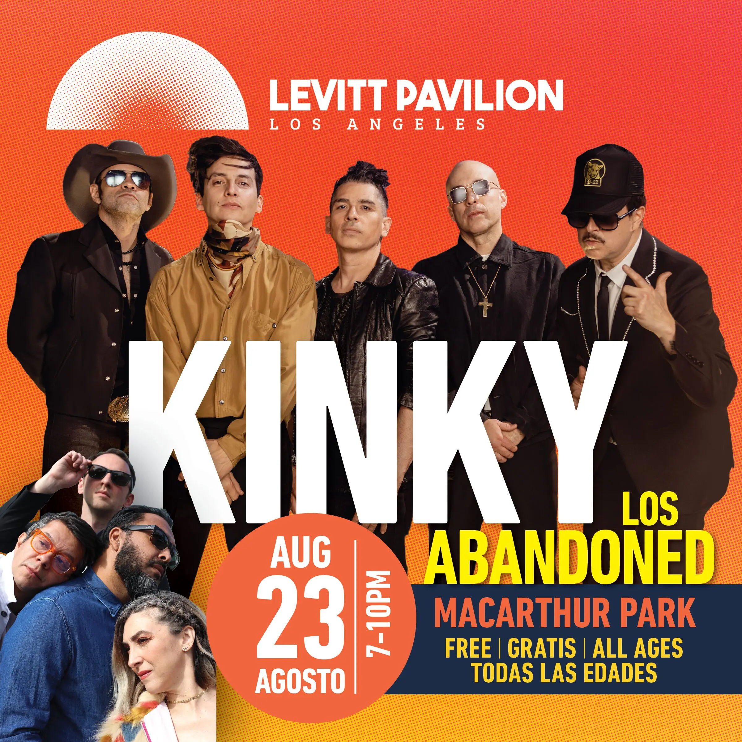Los conciertos se realizan al aire libre, bajo las estrellas, en el MacArthur Park con el impresionante trasfondo de la ciudad de Los Ángeles. Y este proximo 23 de Agosto prepárense para una noche electrizante con Kinky y Los Abandoned en el escenario de Levitt LA.