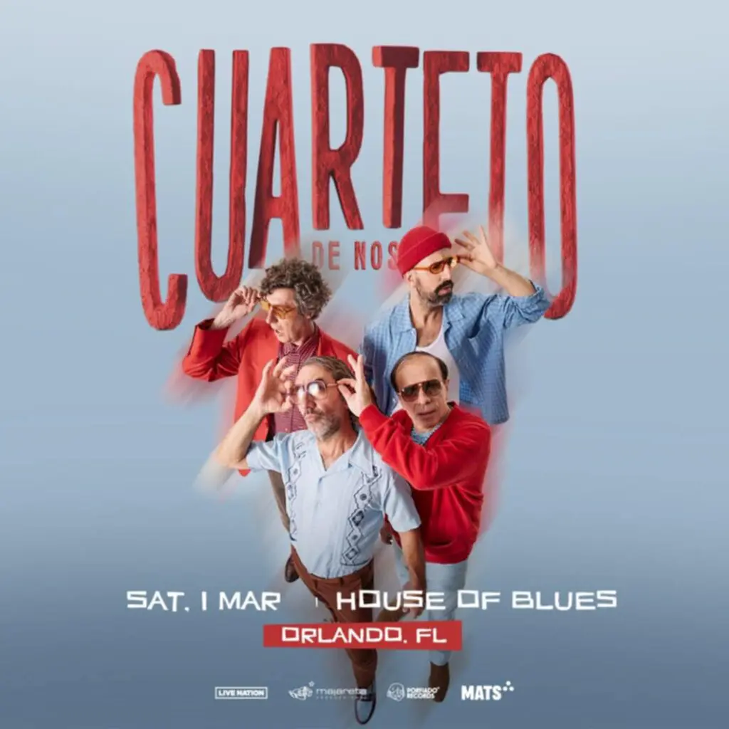 El regreso a los escenarios de Cuarteto de Nos es a lo grande, y con todo lo nuevo, porque serán de los primeros shows con su nueva música. Dentro de las 19 primeras fechas anunciadas de su nueva gira por siete países, hay dos en los Estados Unidos. La primera es en Faurt Lauderdale, Florida, el 28 de febrero en Revolution Live; y la segunda fecha, también en Florida, en el House of Blues de Lake Buenavista, el 1º de marzo.