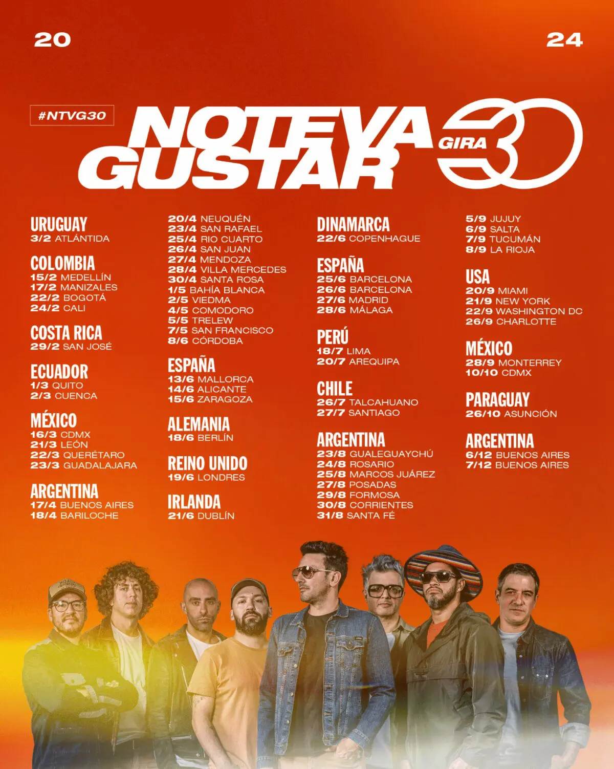 La Gira 30 Años ya tiene más de 60 shows anunciados y además de recorrer Argentina casi completa, también tiene paradas en Uruguay, Chile, Perú, México, Paraguay, Ecuador, Colombia, USA, España, Irlanda, Reino Unido, Dinamarca y algunos otros aún por anunciar.